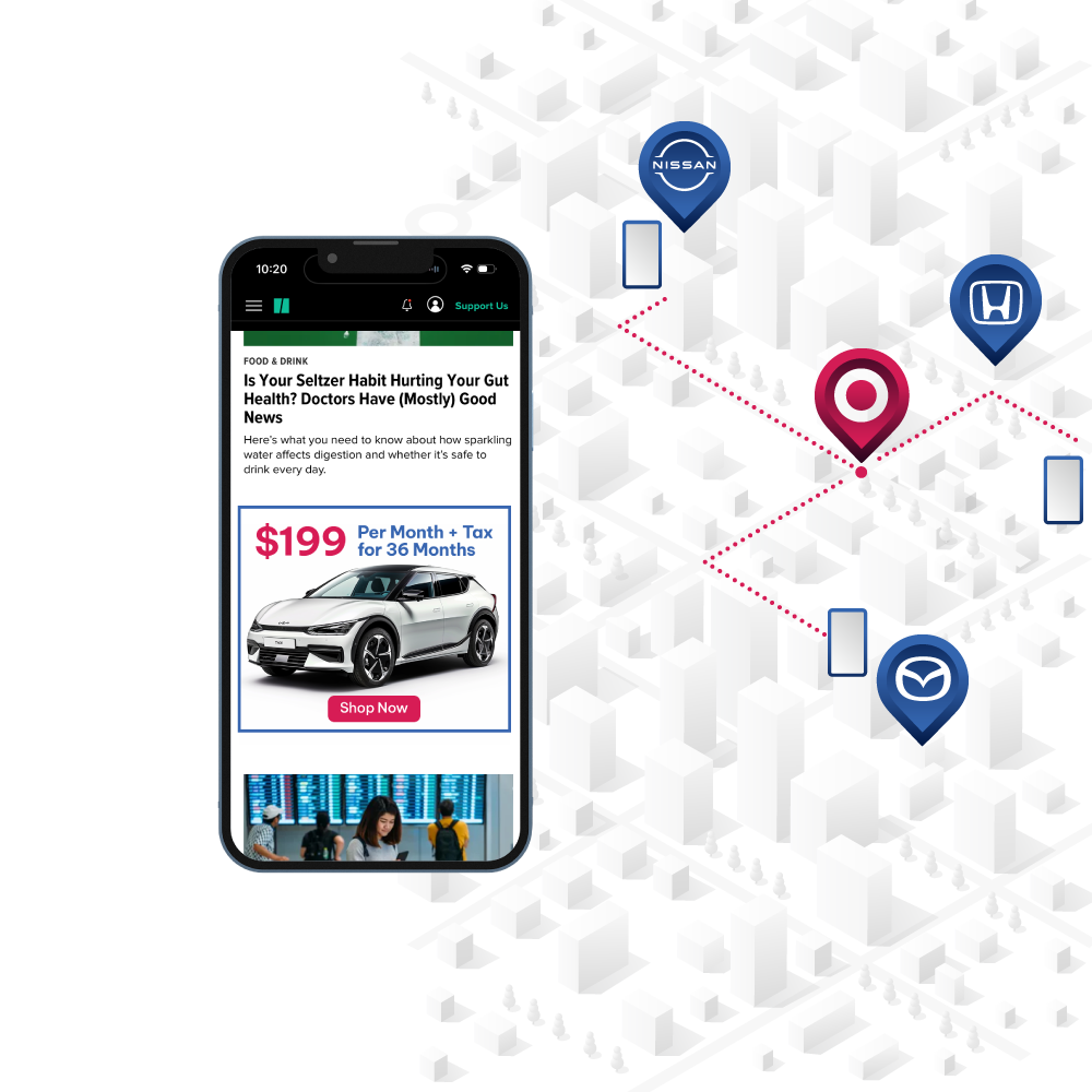 Use our proprietary location technology to measure real-world attribution, mapping those that saw the auto dealership’s ad to actual lot visitation.